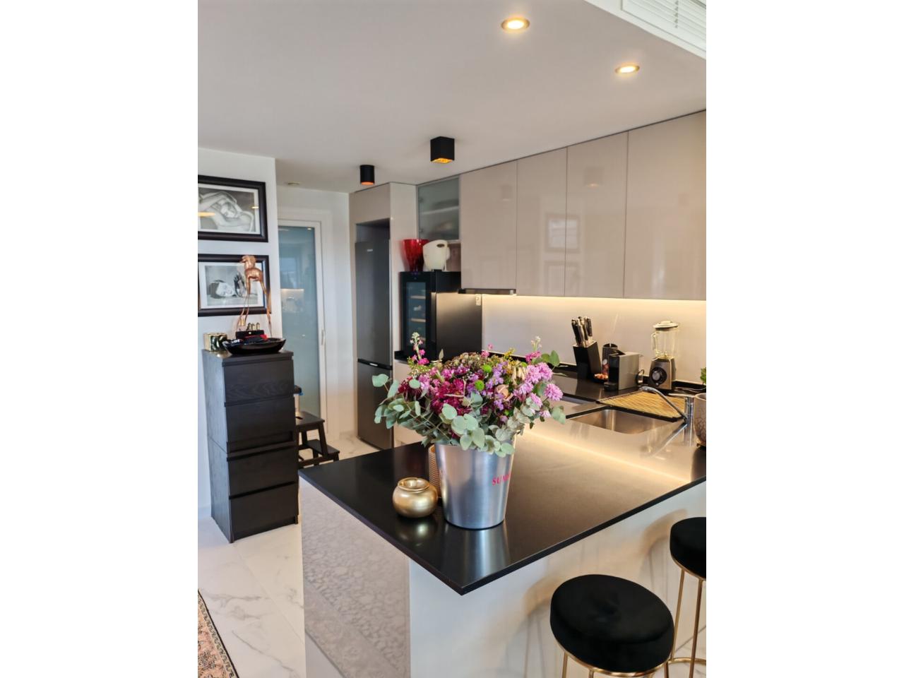 La vivienda dispone de 2 amplios dormitorios y 2 baños completos, uno de ellos en suite. Cuenta con un luminoso salón-comedor con cocina moderna integrada, decorado con un elegante estilo contemporáneo.
