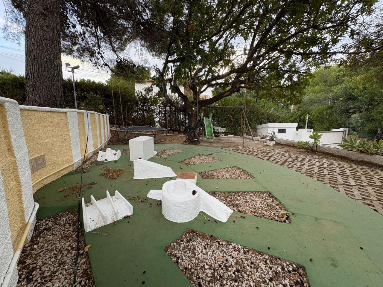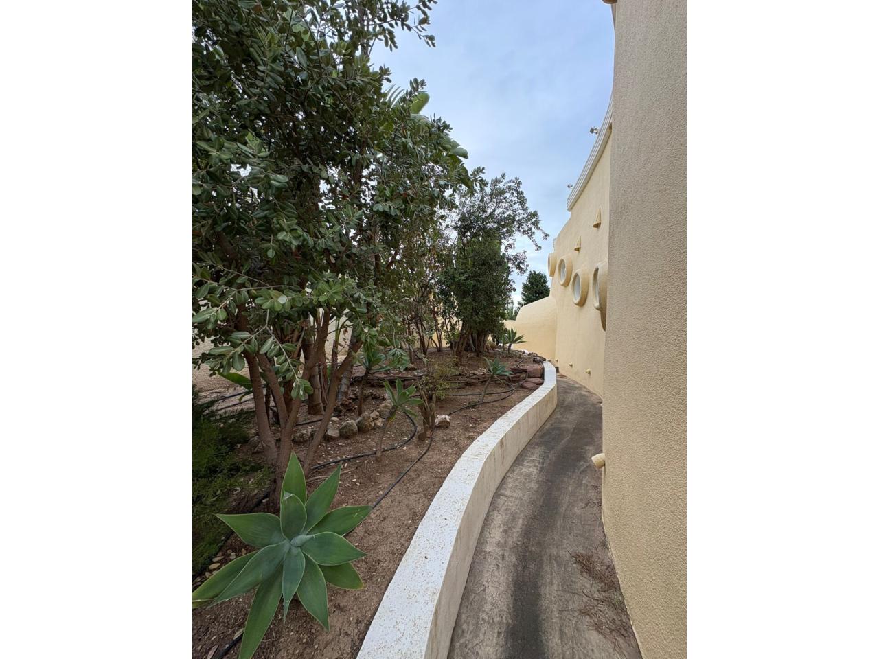 El exterior es uno de los grandes atractivos de la propiedad, pensado para disfrutar al máximo del clima de la Costa Blanca. Destaca su piscina privada con cascada, equipada con un sistema antiincendios conectado directamente, así como un minigolf, perfecto para el ocio en familia o con amigos. El jardín, con árboles frutales, aporta frescura y encanto natural, mientras que las amplias terrazas invitan al descanso y a las reuniones al aire libre.