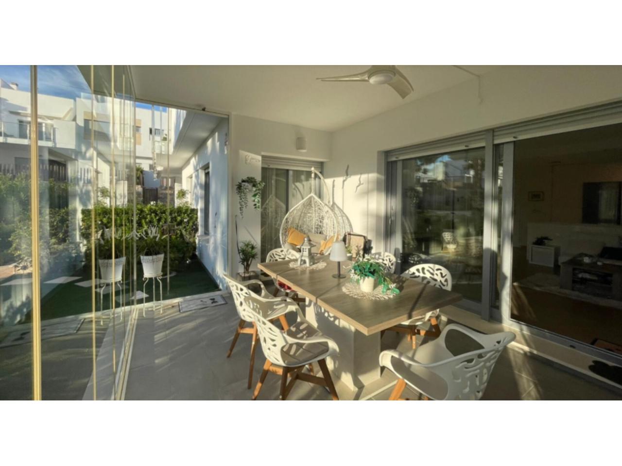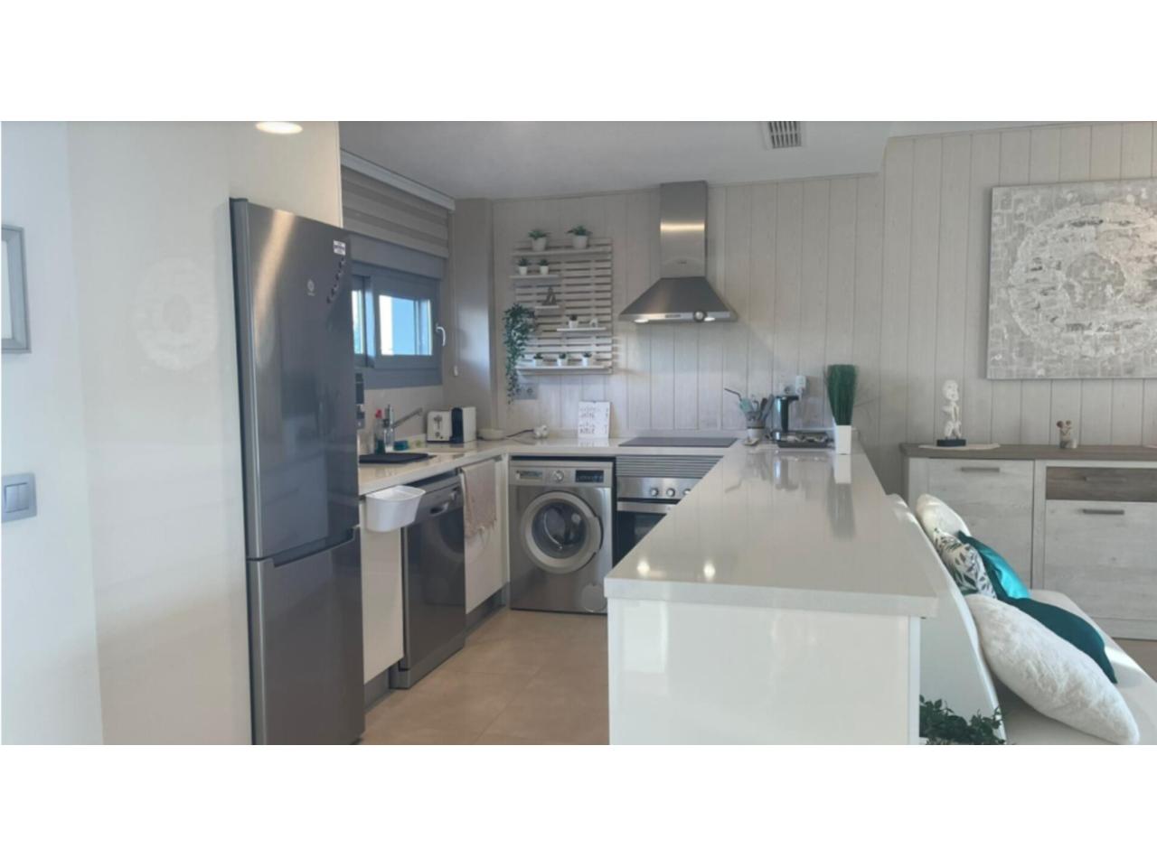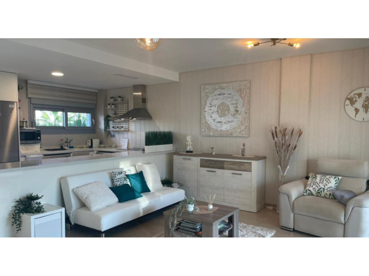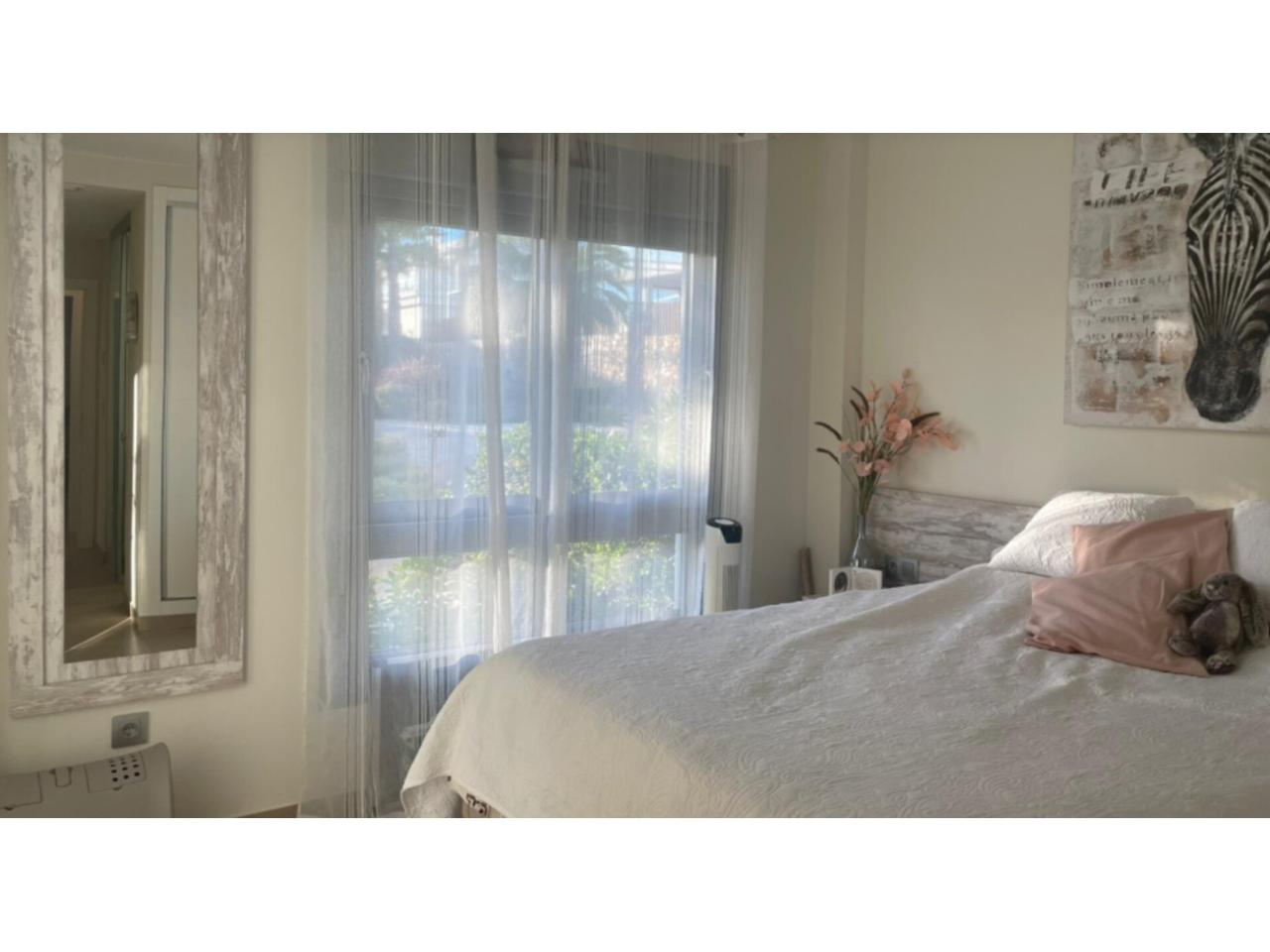 Dispone de un luminoso salón-comedor, cocina abierta, 2 amplios dormitorios y 2 baños modernos, todo en perfectas condiciones. Además, cuenta con plaza de aparcamiento cubierta (carport) y acceso a las zonas verdes y a la piscina comunitaria.